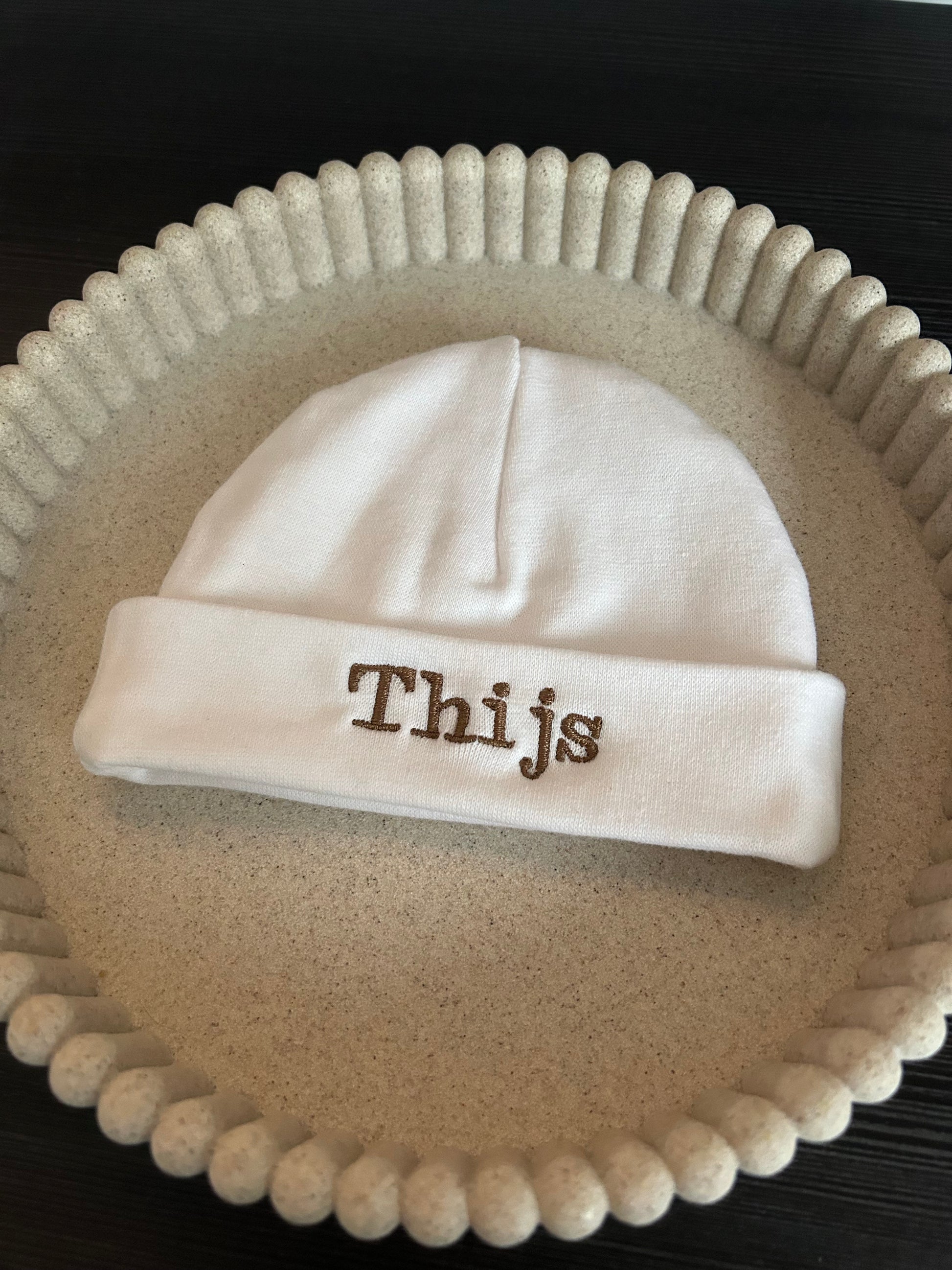 Onwijs leuk mutsje binnen gekregen met hele mooie opdruk van de naam, ontzettend blij mee en echt goeie kwaliteit♥️